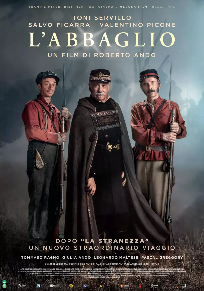 In L’abbaglio ritroviamo gli stessi sceneggiatori (oltre ad Andò, Ugo Chiti e Massimo Gaudioso) e il medesimo gruppo di attori che hanno reso grande La stranezza. Il principale ruolo femminile, una giovane monaca destinata ad abbandonare il convento, è affidato a Giulia Andò, mentre Servillo veste i panni di un personaggio storico: Vincenzo Giordano Orsini. Aristocratico siciliano di simpatie liberali, dopo un periodo di servizio nell’esercito borbonico, Orsini si unì ai fallimentari moti siciliani del ’48 e fu perciò costretto a riparare in Turchia, dove si mise a servizio delle forze imperiali. Da qui, tornò poi in Italia per partecipare all’impresa dei Mille, servendo sotto Garibaldi come colonnello di artiglieria. È in questo momento della sua vita che lo colgono la penna di Sciascia, e la macchina da presa di Andò.