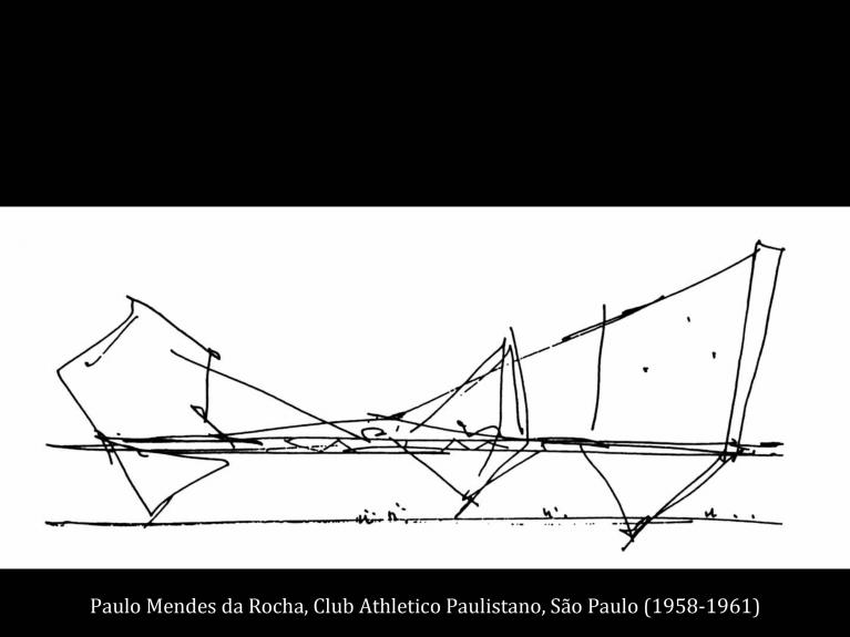 Ciò tuttavia rimarrebbe una sia pur pregevole petizione di principio se non trovasse una diretta “incarnazione” nella materia architettonica. Per Gandolfi essa si compie nella forma del giunto, da intendersi vuoi in senso strutturale (come snodo tra membrature orizzontali e verticali, sempre e comunque con funzioni tettoniche), vuoi in senso spaziale (come elemento di raccordo o di discontinuità tra parti di un edificio, o tra edificio e città). Tanto nella prima quanto nella seconda versione, il giunto è il fattore intorno a cui ruota il senso dell’architettura di Mendes da Rocha. Non a caso di esso Gandolfi dice che è “segno/senso”. Da gran tempo ormai Michel Foucault ha evidenziato la distanza incolmabile che separa le parole e le cose, il significante e il significato, il segno e il senso. Tutte queste coppie, che un tempo vigevano felici nella pienezza delle loro “funzioni”, oggi, per “noi moderni”, hanno sancito il loro divorzio, si sono inesorabilmente scisse. E infatti, alla massima “ridondanza” attuale dei segni corrisponde il massimo svuotamento del loro significato. Pur ben conscio di questo processo e delle sue conseguenze, Gandolfi suggerisce tuttavia una possibile conciliazione, o reintegrazione: il giunto rappresenterebbe variamente il momento di sintesi di elementi che hanno finito storicamente per contrapporsi. In quanto segno “trasparente” del senso di cui è portatore, esso sarebbe forma di unione e di separazione, idea e cosa, ma anche punto di flesso – come già visto – tra architettura e città.