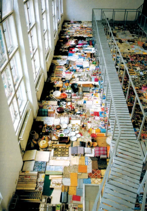 Di che opera si tratta? Cosa vuole comunicarci? Bott ha esposto la propria collezione composta di oggetti prodotti in serie come un campionario possibile in orizzontale, sul pavimento, perché non esistono gerarchie.