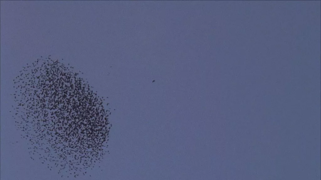 Eppure, ci riguarda almeno quanto le singole traiettorie di volo degli uccelli che volano in stormo, nel periodo migratorio, un miracolo della natura: solo l'arte e la matematica riescono a darne una rappresentazione. Flocking (2008), poesia alata di Armin Linke, ricama il cielo azzurro e gonfio. Gli occhi, rapiti, si alzano al cielo: dove vanno, verrà a piovere? I dati raccolti offrono alcune risposte agli scienziati, ma più ancora pongono questioni urgenti agli economisti e ai sociologi: e noi, dove andremo, invece?