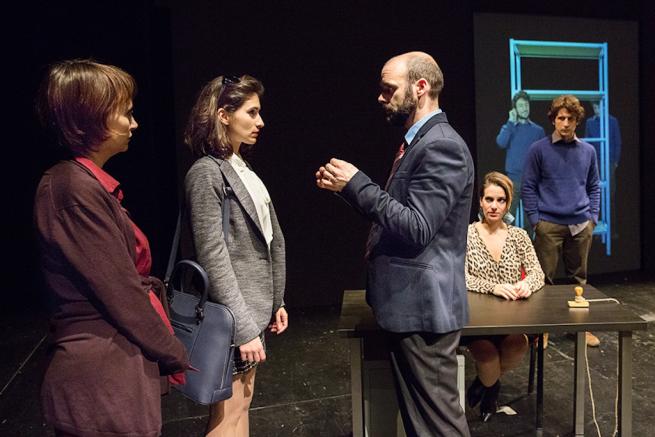 Gli interpreti sono semplicemente perfetti, capaci di prendere dall’esterno le nevrosi dei loro personaggi e di dargli profondità senza mai confondersi con loro e senza neppure perdersi sopra le righe del concettuale. Rita Brütt è la studentessa bocciata e la frustrata utente del folle ufficio, un’apparizione simile a un fantasma, a un’Ofelia smarrita. Come lei portoghese, Amândio Pinheiro è il padre, uno dei relatori nell’intermezzo e il torbido e normalissimo capufficio. Fabrizio Lombardo e Laura Nardi passano dai toni nevrotici trattenuti dei critici d’arte, alla super efficienza di impiegati danzanti un grottesco gioco al massacro in forma di balletto. Deniz Ozdogan è stupenda nella Belem dell’ultimo episodio, piccola impiegata belloccia che dimostra la volatilità del valore nella società post-crisi. E quando si perde nella nenia dell’intermezzo, con la sua voce allenata sulle melopee turche rapisce. Cinque caratteristi dell’anima paracadutati nel deserto del virtuale.