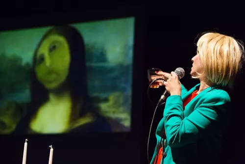 In scena si susseguono tre storie. Quella di un’anziana signora che, stufa dello stato di abbandono e degrado dell’affresco di un Ecce homo nella sua chiesa nei dintorni di Saragozza, lo ha restaurato a suo modo, scatenando una discussione sui media se abbia rovinato un pezzo di memoria trasformando il Cristo in una figura che sembra una scimmia o se abbia creato un’opera fuori dei canoni, tra l’iconoclastia e l’Art brut. Tutto si trasferisce poi in un salotto parigino, con due critici che discettano amabilmente e parecchio nevroticamente sui confini dell’arte, finché la donna, approfittando dell’assenza del suo interlocutore, che si insinua abbia un interesse per i ragazzini, non si infila sotto la veste, tra le gambe, una delle due candele del tavolo, e poi sembra rovesciare le idee appena professate per bocciare una studentessa portoghese che ha presentato una tesi sul caso dell’avventato restauro.