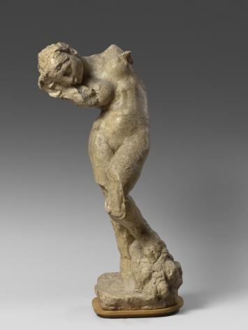 Mai corpo umano è stato così raccolto attorno alla parte più profonda di sé, così piegato dalla propria anima e di nuovo risollevato dal vigore elastico del proprio sangue. E quel lieve staccarsi del collo dal corpo che sprofonda di lato, quel tendersi a levare la testa in ascolto verso il lontano mormorio della vita, è raffigurato con una sensibilità così grande e penetrante che non viene alla mente nessun altro gesto più commovente e più interiorizzato. Colpisce il fatto che manchino le braccia. Rodin le considerò in questo caso una soluzione troppo facile del suo compito, qualcosa di non appartenente a quel corpo teso a ravvolgersi su se stesso, senza aiuto estraneo. Subito si pensa alla Duse, quando, in un dramma di D'Annunzio, dolorosamente abbandonata, tenta di abbracciare senza braccia e di trattenere senza mani.
