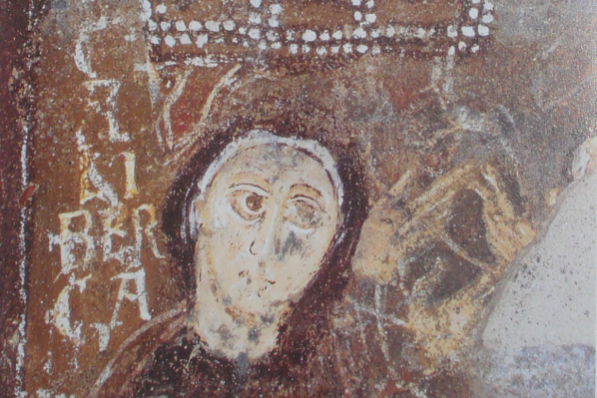 Monastero di Torba (Va), affresco raffigurante la badessa Aliberga, primo piano del torrione. (ph. MLG)