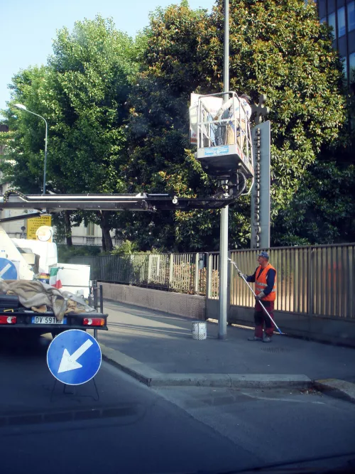Nella strada dove abito stanno ridipingendo i lampioni. Potrebbe sembrare un intervento di manutenzione ordinaria, non fosse per la fretta da “comica finale” con la quale i due incaricati lo eseguono: l’uno in piedi, armato di un pennello che agita forsennatamente intorno alla base del palo, l’altro paurosamente oscillante su una pedana mobile. Strada dopo strada, lampione dopo lampione, questa versione aggiornata e imbrattata di pittura di Arturo e Geremia, la coppia di assistenti sciocchi dell’agrimensore K. nel Castello di Kafka, è impegnata a portare a termine nel giro di pochi giorni la propria allegra missione: rendere presentabili i supporti dell’illuminazione stradale cittadina.