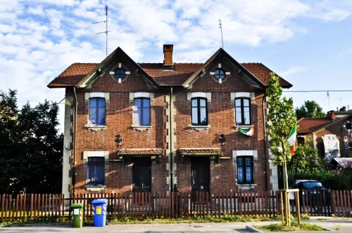 Un clima da Nord Europa si respira anche al cospetto della Chiesa, centrale nella disposizione del villaggio: di culto cattolico, intitolata a Santa Elisabetta (dal nome della figlia perduta) a pianta longitudinale con navata unica. Presenta ai lati due cappelle, vetrate e decorazioni interne di gusto liberty realizzate – apprendo – da pittori diretti da Fenoglio stesso. Colpiscono più di tutto i due campanili con riferimenti alle scuole cosiddette carolingie d’oltralpe con la parte terminale decorata da croci in ferro battuto. Perché specifico “di culto cattolico”? È un altro aspetto interessante della storia: Napoleone era protestante ma decise di erigere una chiesa di culto cattolico perché di quella fede erano i suoi dipendenti anche se l’edificio manteneva le forme e il carattere spoglio dei luoghi di culto di tradizione protestante.