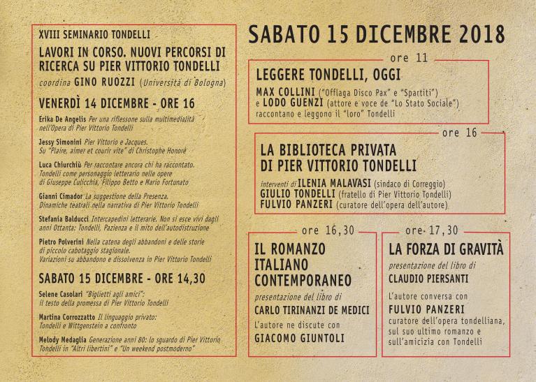 Il 14 e il 15 dicembre si terrà a Correggio, sua città natale, un convegno sull'opera e sulla figura di Pier Vittorio Tondelli. Interverranno docenti universitari e critici letterari che hanno seguito sin dall'inizio il suo lavoro.