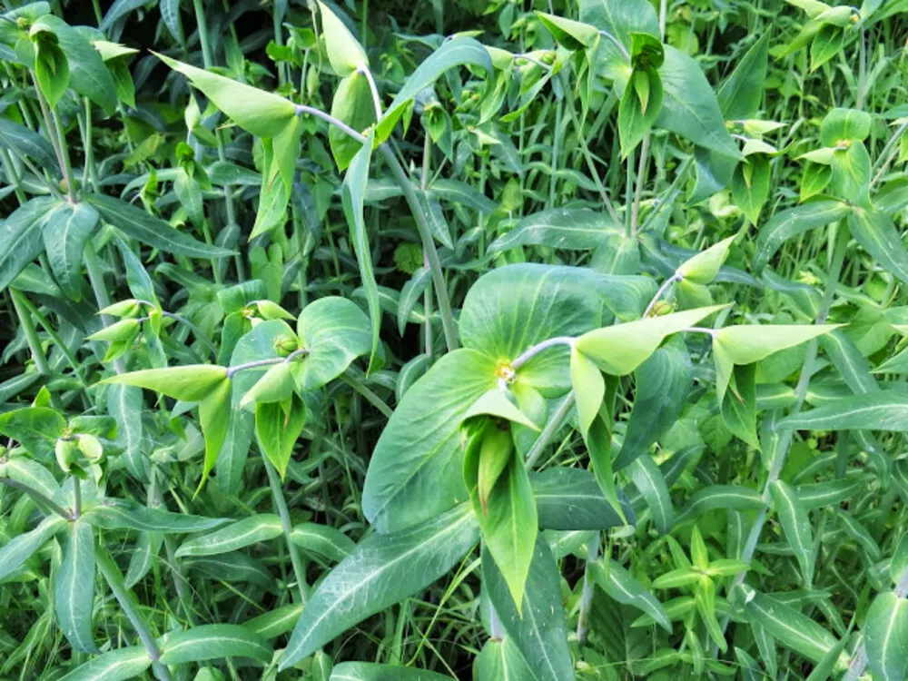 Volgarmente detta Catapuzia, è un’euforbia biennale (Euphorbia lathyris) dal fusto eretto, vigoroso, glauco, sul quale si innestano lunghe foglie lanceolate, cuoriformi alla base, opposte e decussate. Vistosa anche l’infiorescenza (ciazio) a ombrella con lunghe brattee gialle triangolari. I frutti, per forma e colore simili ai piselli (come pare suggerire la derivazione greca dell’aggettivo lathyris), sono responsabili anche del curioso nome comune: