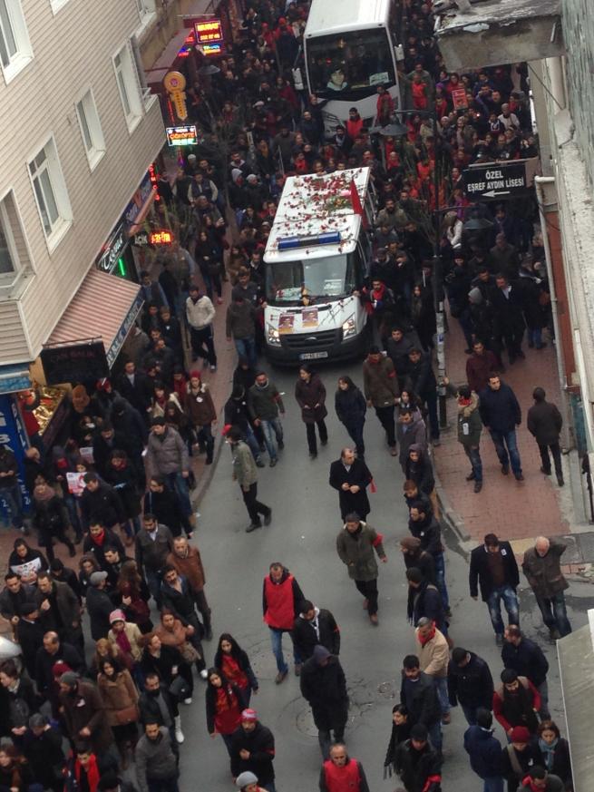 Chi erano le persone che hanno agitato le strade delle città dell’estate scorsa? E che volto aveva la fiumana di gente che è accorsa ai funerali del giovane Berkin Elvan? Uno dei fatti che forse ha più commosso l’animo degli abitanti di Istanbul è stata la morte dell’adolescente dopo mesi di coma. Lo scorso 16 giugno, nel periodo delle proteste per Gezi Park, era uscito di casa per andare a comprare il pane; durante il tragitto è stato accidentalmente colpito alla testa da un candelotto di lacrimogeno. Entrato in coma, non si è più svegliato ed è morto l’11 marzo di questo anno. Il giorno dopo, al corteo funebre hanno partecipato decine di migliaia di persone. Un fatto che ancora una volta ha visto scendere per le strade persone di diversa età ed estrazione sociale, proprio come ai tempi di Gezi, ma questa volta con slogan differenti. Mesi fa, a suon di pignatte e cucchiai per la strade e dalle finestre, la gente gridava “Tayyip dimettiti”. Ora, alla luce degli ultimi fatti, il premier viene apostrofato come “ladro” (dopo gli scandali per corruzione) e “assassino”.