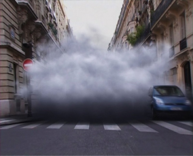 Come un fluido invisibile, la vita politica penetra nell’intimità della nostra vita notturna, sui nostri immacolati schermi mentali, morbidi come cuscini, sui quali proiettiamo i nostri sogni. Ripenso a Reenactment (2000), il video dove Francys Alys gira con una pistola Beretta 9mm nella mano destra per le strade di Città del Messico in pieno giorno prima di essere fermato, undici minuti dopo, dalla polizia. Ripenso a quella nuvola che avanza per le strade deserte di Parigi e copre le macchine parcheggiate quanto le insegne dei negozi in Projection (2005) di Laurent Grasso. Ripenso persino a Air de Paris (1919) di Marcel Duchamp che, dietro l’apparente neutralità dell’ampolla farmaceutica, evoca la diffusione delle maschere a gas durante la Prima guerra mondiale.