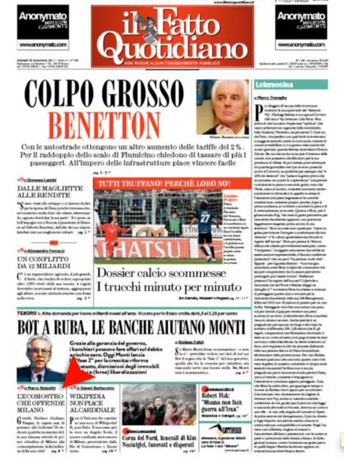 La lettera è apparsa sul Fatto Quotidiano di giovedì 29 dicembre 2011. Scarica il pdf.