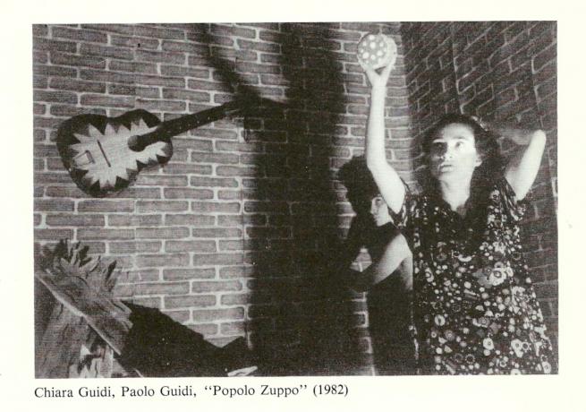 La Raffaello Sanzio è troppo fiduciosa di queste sorprese-riprese, per non permettersi di abbondare, e per non cedere alla tentazione di una felicità; ma ha angolature schizzinose e comportamenti acerbi che le impediscono di rassicurarsene e di farne tesoro. Così “Popolo Zuppo” è intriso di uscite e di rientri, di vuoti e di pieni, che non sai mai classificare realmente: se cioè sono la conseguenza di un ardire, di un osare soggettivo e immaginario, oppure la premessa di una atroce e spietata visione collettiva di vita. In questa ambiguità la Raffaello Sanzio sancisce la sua presenza non marginale né ineffettuale all’interno della ricerca teatrale ed impone anzi una sua linea, una sua traccia, per trasgressioni interni e per trasferimenti soggettivi di nevrosi e di felicità, di esplorazioni e di distruzioni. Così il lavoro della Raffaello Sanzio fa da avvertimento e da spartiacque, agisce segnaleticamente e per indizi, spostando l’asse ed il paesaggio della ricerca, salvandosi per respiro e per energia su vuoti interpretativi generali.