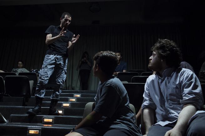 Dunque, l’allenamento al sangue versato, le domande del Prima che Angius, Bonaventura e Cirri rivolgono al pubblico sono la miccia, le risposte del pubblico sono l’ossigeno che la tiene accesa: rispondere ti mette nella condizione di pensarti lì dove cadrebbero le bombe. In teatro, adesso, durante lo spettacolo. Le parole, però, sono incerte, balbettate, insincere, nascondono il non sapere cosa dire di sé su qualcosa che non si è veramente vissuto, da vicino. WAR NOW! lo mostra con brutalità quando otto di noi vengono invitati sul palco a fare i Capi di Stato al summit internazionale che dovrebbe scongiurare il conflitto: restano in silenzio, non dicono nulla, perché non hanno niente da dire. D’altra parte, non sono stati chiamati proprio per questo?