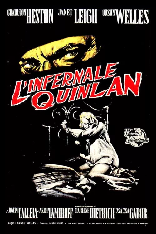 L’infernale Quinlan è un film noir di serie B che consente a Welles di mostrare il suo genio più che nelle riduzioni shakespeariane, eccellenti, da Otello a Macbeth a Falstaff. In questo film a contare ovviamente non è la storia ma la distorsione degli spazi, che il regista ci presenta vasti come pianure o stretti come incubi (il virtuosistico dolly con il lungo piano sequenza iniziale o l’omicidio crudele di Joe Grandi, strangolato da Quinlan ubriaco). Tutto è sproporzionato e illusorio, grazie alle prospettive della macchina da presa, e la sproporzione crea un punto di vista scomodo da cui vedere le cose: lo spettatore non può aderire al contenuto del film senza identificarsi con la fisicità delle sue immagini, e quindi è obbligato a vivere interiormente ogni scena.