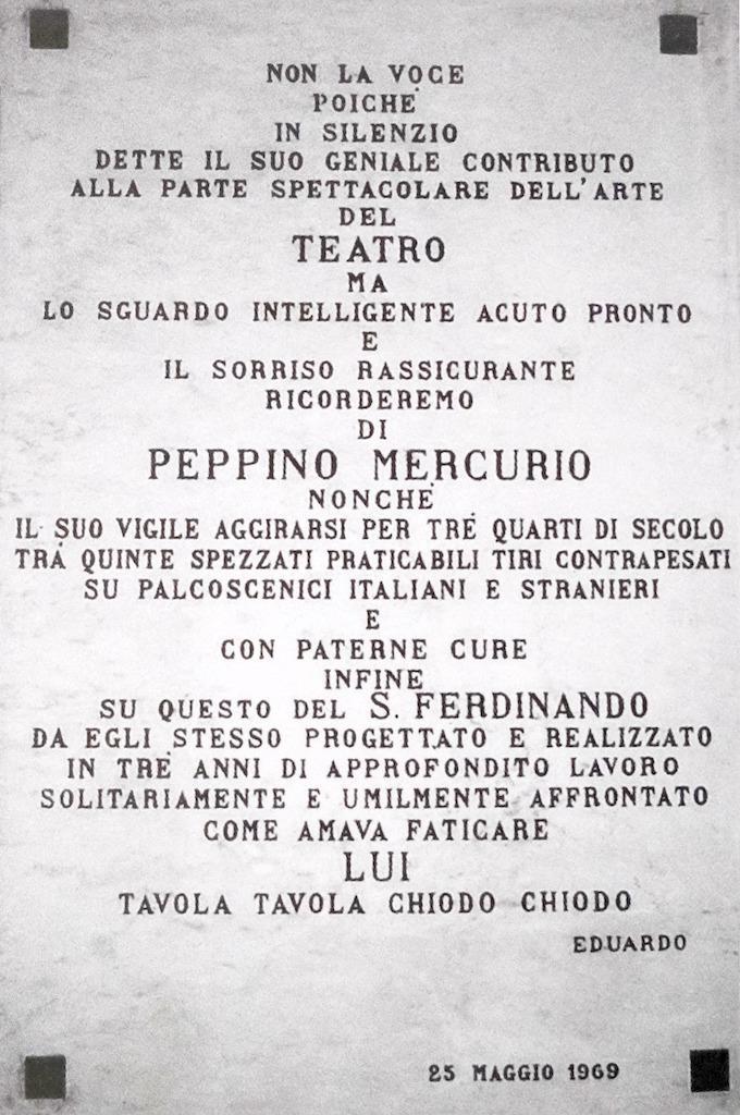 La targa che Eduardo ha dedicato a Peppino Mercurio.