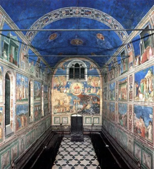 Purtroppo il restauro del 2002 che ha restituito ai loro colori smaglianti gli affreschi della cappella Scrovegni, non si occupò per nulla della cripta, che alta e spaziosa sostiene l’intera cappella (ad accezione del presbiterio, che poggia sulla terra). Un simile gioiello architettonico oggi può essere visto solo facendo domanda in comune ma si presenta in condizioni sconfortanti: la cripta è ingombra di cassette e oggetti celati da ampie coperture in plastica; il pavimento è una gettata di cemento sconnesso dove, nonostante la siccità, scorre acqua che emerge dalla falda sottostante. Impossibile il colpo d’occhio della volta dove sono dipinte le stelle di Giotto (ma le stelle nere originariamente come si presentavano?) perché sono rimaste le poderose sostruzioni in mattoni ad intervalli ravvicinati che dovevano, durante l’ultima guerra, evitare che l’effetto d’urto delle bombe facesse crollare la cappella. Tali sostruzioni non hanno alcun effetto statico e nel 2002 sarebbero dovute essere tolte così come già allora doveva essere affrontato il problema del compromesso assetto idrogeologico della cappella. Dunque una incomprensibile occasione perduta.