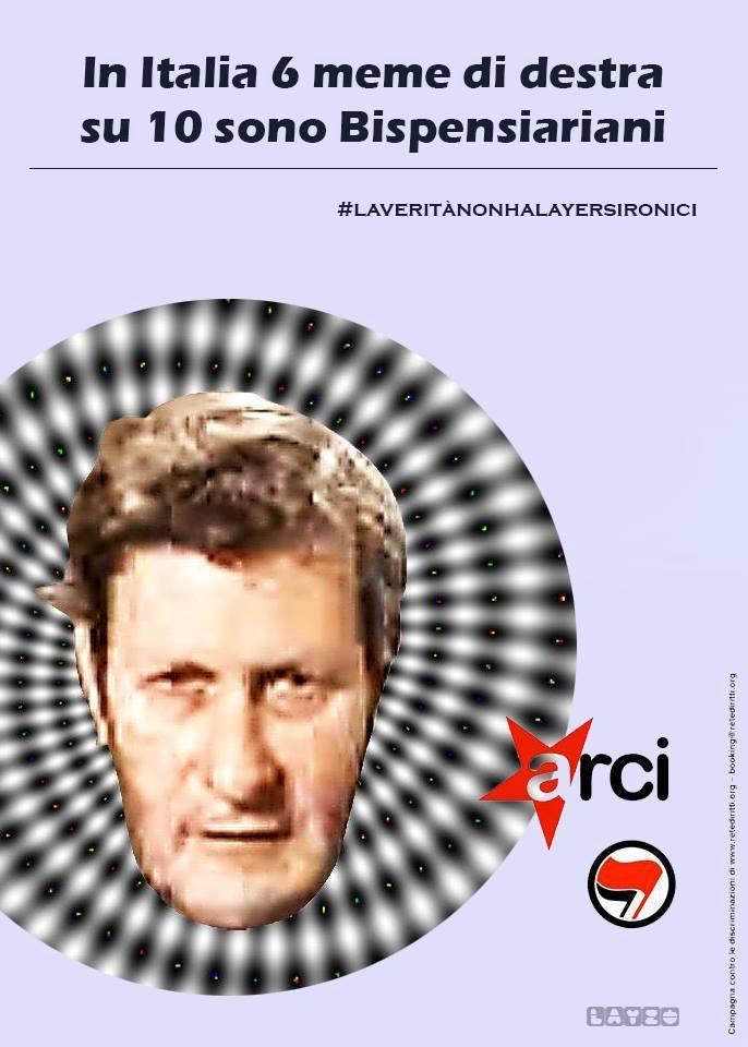 «Bispensiero è paradigmatico perché è proprio quello che è accaduto con l’alt-right, in un contesto più ampio. Nel momento in cui ti fa un finto manifesto dell’Arci o di Casapound, non capisci più da che parte sta. Puoi ridere per tutta una serie di motivi, da destra a sinistra. Ma non si capisce cosa vuoi veicolare o mettere in discussione. Con questo livello massivo di ironia entra in crisi la possibilità stessa di affermare qualcosa. Ora: il discorso di sinistra, libertario, è sempre un discorso che deve darsi contro la realtà, contro l’ordine delle cose, ma quando è in crisi la possibilità stessa di dire qualcosa tu mi hai levato questa possibilità».