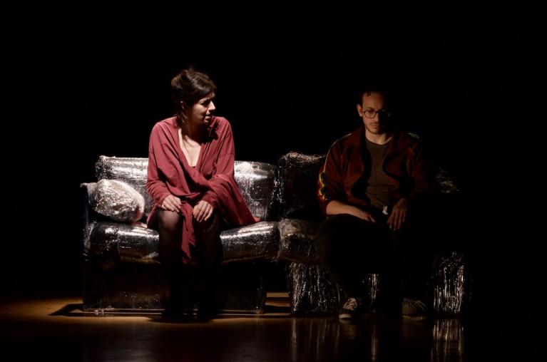 Molto più forte è lo spettacolo che incrocia Angelo della gravità e Le cose sottili dell’aria di Massimo Sgorbani, due solitudini che esplodono, quelle di una madre e quelle di un figlio, inchiodati a uno stesso divano, interpretati con alternarsi di primi piani e scomparse nell’ombra da una densa Cinzia Spanò e da un Francesco Errico apparentemente più leggero, ma pure di bella svagata forza. Siamo nella tragedia di una quotidianità vissuta come assenza, come ricerca di sostituzioni di qualcosa che profondamente manca. E lo spettacolo si incide fortemente, con la sua formicolante tragicità antiretorica, perfino banalmente sommessa.