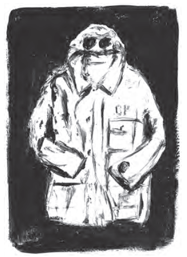 A proposito di res publica – il lettore mi perdonerà l’azzardo di questo flusso di coscienza – ho trovato uno spunto di riflessione interessante nella sezione del catalogo L’Italia degli oggetti, illustrata da Riccardo Miotto, dove viene proposta una lista delle icone del 1971-2001, tra cui troviamo anche il Goggle jacket C.P Company che mi ha riportato alla memoria la versione piumino indossata nel 2013 da Beppe Grillo, durante una sessione di jogging a Marina di Bibbona, usata per schermarsi completamente dall’assalto dei giornalisti, tramutandosi in uomo-mosca. Il goggle jacket ha la particolarità di avere delle lenti scure incastonate nel prolungamento del cappuccio, a coprire completamente il volto, e il suo ideatore Massimo Osti ha tratto ispirazione dall’abbigliamento militare e sportivo per progettare un capospalla adatto alla sopravvivenza nella giungla urbana, in grado di assicurare completa protezione dagli agenti atmosferici e dai paparazzi. Elda Danese, nella scheda dedicata al giubbotto, definisce il suo design steampunk, e se, grazie a Eco e Dorfles, ormai abbiamo accettato di buon grado che l’abbigliamento identifica posizioni ideologiche, l’abbinamento tra Grillo e il goggle jacket acquisisce ancora più senso, dato che parliamo del fondatore di un partito con velleità innovative regolate da un organo d’antan come il direttorio.
