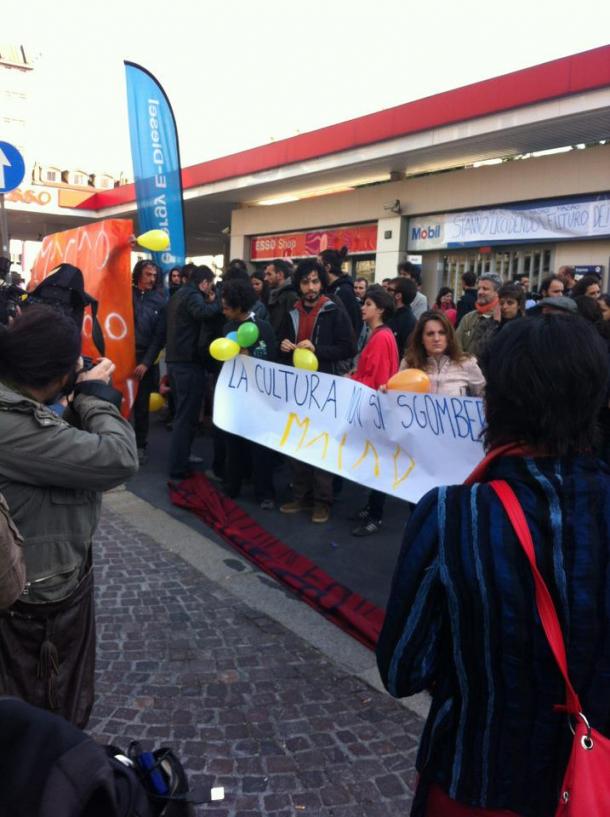 Ore dieci, siamo sui duecentocinquanta. Tutto sembra sospeso. C’è incredulità e scoramento e delusione. Si è qui. Con il container donato da Ligresti (che Macao ha rifiutato, come ha rifiutato l’aiuto/intervento dei mezzi pubblici per portare via le cose). Con un edificio che non vuol tornare abbandonato.