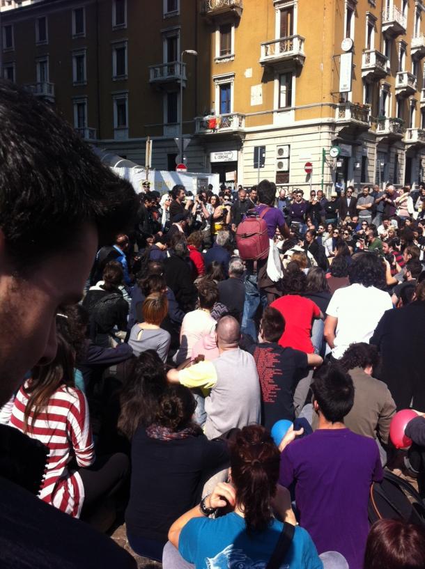 Qui, alle otto. Arrivo pensando che non sia possibile che, come si scrive su twitter, “ti ho votato perché a Milano non accadesse più quello che sta accadendo ora”. È passato un anno, un anno più o meno esatto. Si è atteso che Pisapia prendesse una qualche posizione, in questi giorni. Si è atteso che si aprisse lo spazio di un dialogo.