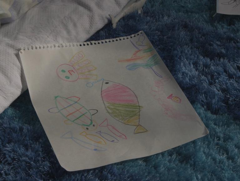 I registi hanno raccontato anche che la scena in cui Takara incontra per strada due cani, e poi si mette ad abbaiare con loro, non era prevista nel copione, ma è nata per caso su iniziativa del bambino, e che appena prima di girare la sequenza della tempesta di neve, dopo aver visto suo padre andare al lavoro, Takara è scoppiato in lacrime, dando sfogo nella realtà a un’emozione che nel film è evocata sempre in forma allusiva. Lo stesso disegno scelto come elemento di connessione tra i due, inizialmente, avrebbe dovuto essere un ritratto del padre, e solo grazie a un’idea di Takara si è trasformato in un disegno di pesci e animali acquatici, attorno al quale i registi hanno poi rielaborato la storia e l’hanno intitolata di conseguenza. Il fatto che la consegna del disegno non avvenga in modo diretto, a quanto pare, ha portato il bambino a confidare alla madre, dopo la prima proiezione al Festival di Venezia, che il film gli sembrava incompleto: aveva immaginato di vedere Takara dare di persona il disegno a suo padre, e chissà se in quel momento stava ricordando una scena realmente girata, una sua fantasia o entrambe le cose.