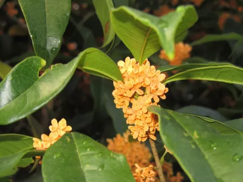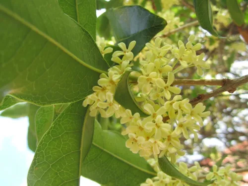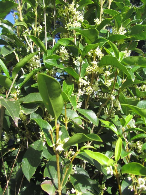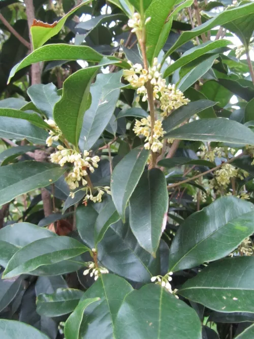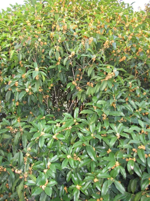 Meglio nota come Osmanthus, l’olea fragrans è oggi arbusto di gran moda, specie nella variante Aurantiacus dai più scenografici fiorellini arancio. Così l’olea, dalle villone ville e villette, villerecce o rustiche, di Longone si è diffusa a macchia d’olio, è proprio il caso di dire, in tutta la piana del banzavòis: non c’è ritaglio d’erba, balcone o terrazzo che non abbia la sua, in vaso (più adatte le varietà nane) o in piena terra.