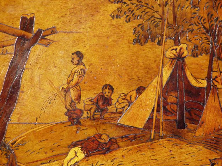 Particolare dei soldati che urinano e defecano, Bergamo, Basilica di Santa Maria Maggiore.