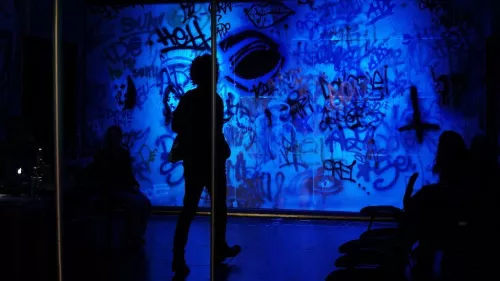 I graffiti sulle pareti del contenitore metrò erano disegnati dagli studenti del liceo artistico Stradivari di Cremona, ispirandosi al Poema a fiumetti di Dino Buzzati.