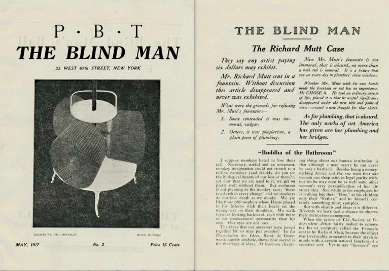 Il giorno dell'inaugurazione l'oggetto era là, ma invisibile al pubblico, nascosto dietro una parete divisoria. Duchamp, che si era dimesso per protesta, lo ritrovò dopo qualche giorno, se lo portò via alla chetichella con l'aiuto dell'amico Man Ray e lo trasferì nello studio del fotografo e gallerista Alfred Stieglitz, altro nome importante dell'avanguardia newyorkese. È lui a scattare la foto che finirà sulla copertina della rivista ideata da Duchamp proprio in occasione della mostra. Ed è lì, sul secondo numero di The Blind Man, datato maggio 1917, che la profezia divenne pubblica: il messaggio nella bottiglia venne lanciato in mare.