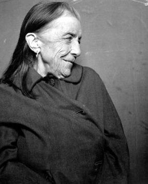 Sfruttando la topografia della sua casa inizia una sorta di azione coreografica piena di entrate e uscite di scena. Per un attimo è in piedi davanti a me, le mani appoggiate al tavolo e lo sguardo diretto e sospettoso di chi si teme in pericolo, e l’istante dopo è sparita. Risucchiata nel labirinto circolare delle stanze, mi parla da lontano e la sua voce fuori campo è quasi impercettibile. È Jerry a richiamarla e a ricordarle che in questo modo le sue parole rischiano di svanire su una cassetta impotente. Ricompare ogni volta portandosi dietro qualcosa, fotografia, disegno, oggetto, da cui fa ripartire il discorso. Dal punto esatto in cui credevo di averla persa.