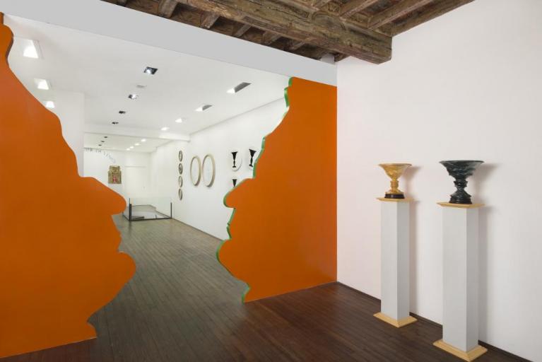 Di vasi fisiognomici se ne troveranno poi diversi in mostra, a partire dai due che stanno accanto all’entrata, a loro volta uno (arancione) e l’altro (verde), e poi dipinti, su profili di vari personaggi.
