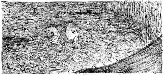Lo scorso anno eravamo partiti da Gipi, protagonista assoluto del fumetto italiano contemporaneo, per intraprendere un percorso che, seguendo la paradossalità programmatica del grande autore pisano, aveva cortocircuitato il rinnovato status del fumetto a consumo culturale diffuso e condiviso con l'universo multiforme dei giochi di ruolo. Il caso vuole che questa nostra Lucca sia ripartita proprio da Gipi. Un anno dopo Bruti, il fumettista è tornato con il suo nuovo romanzo a fumetti: credo che questa denominazione sia la più precisa per definire intenzioni e forma di questo ritorno editoriale. In un incontro affollatissimo moderato da Roberto Recchioni, Gipi ha raccontato con il consueto understatement deragliante e guascone l'humus che sta alla base di La terra dei figli: questo volume cartonato, compatto e in rigoroso bianco e nero, è stato il frutto di alcuni a priori espressivi che hanno caratterizzato tutta la fase della sua gestazione. "Come autore ho deciso di suicidarmi" dice Gipi: basta autobiografia, basta raccontare "i cazzi miei", basta voce narrante, basta colore: dopo un matrimonio e un cambio radicale di stile di vita, Gipi si è ritrovato a suo dire per la prima volta finalmente felice. Da qui automatico è stato l'emergere di una nuova sfida per certi versi sconcertante: caso si può raccontare quando emerge di colpo e improvvisa la serenità? Di cosa di può scrivere se si è sempre stati abituati a fare dei propri conflitti interiori la benzina della propria creatività? Gipi si è dunque scoperto narratore puro, inventore di mondi e soprattutto architetto di narrazioni con un inizio, uno svolgimento e una fine.