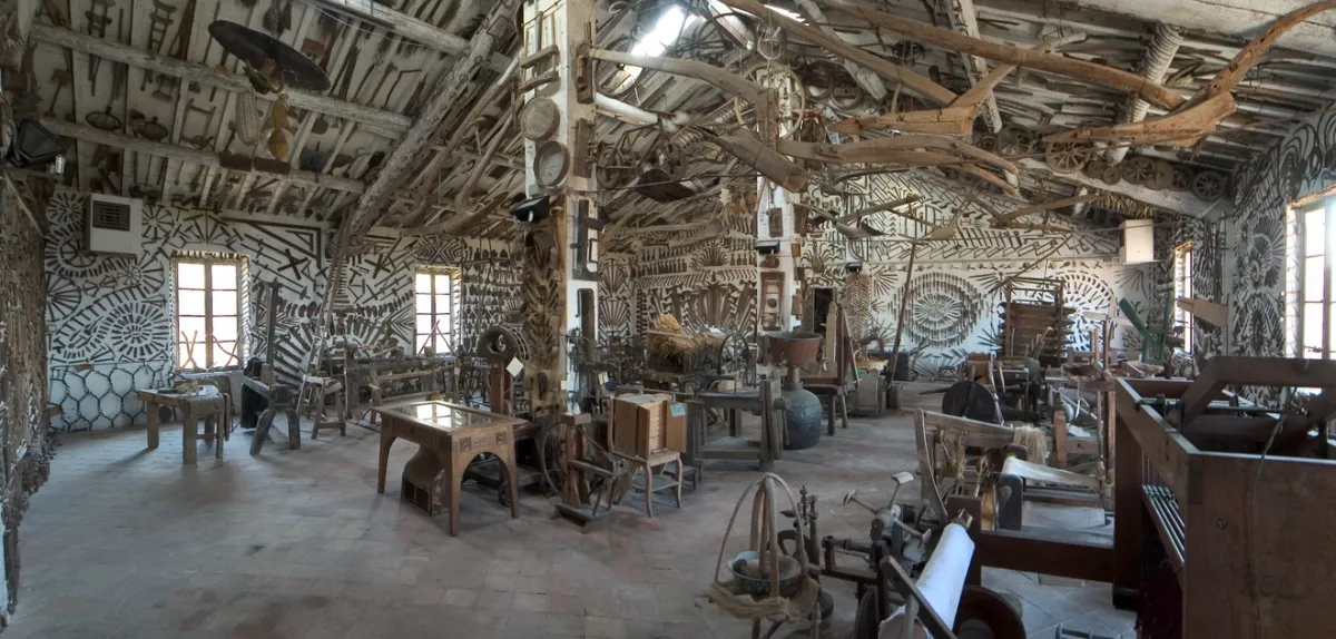 È da tempo che volevo visitare il Museo Guatelli. Me ne aveva parlato l'amica Marta Sironi, che ha un gusto infallibile per il bello e non vedevo l'ora di andarci. Tra una cosa e l'altra sono passati un po' di mesi e una mattinata piovosa di questo inverno mite non scoraggia il nostro equipaggio a far rotta verso Ozzano di Taro, prima tappa di una giornata intensamente emiliana. Tra la pianura e l'Appennino, appena prima di Fornovo, una vecchia casa di mezzadri, con stalla ed edifici annessi, ospita il Museo Guatelli. Ad accoglierci è Lino che, con amicizia e gentilezza, risponde alle nostre domande e ci fa notare le cose più curiose di questa gigantesca e compressa raccolta della civiltà contadina e, più in generale, del mondo di ieri. Ma non è solo un museo dell'uso e del riuso della vita quotidiana, è di più, e se ne sono accorti, tra gli altri, Federico Zeri, Christian Boltanski, l'onnivoro Sgarbi.