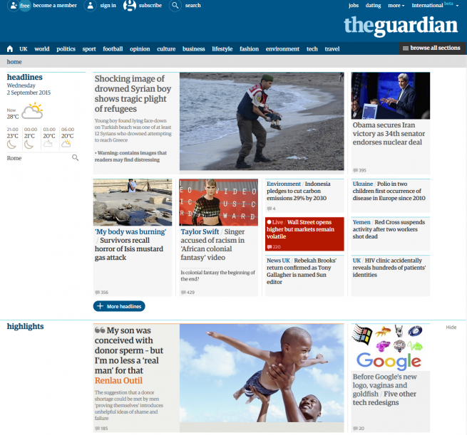Il titolo lo leggo nel tardo pomeriggio di ieri sul “Guardian”, Shocking images of drowned Syrian boy show tragic plight of refugees, e i miei occhi saltano da “drowned”, a “boy” a “refugees” alla fotografia a fianco, clicco meccanicamente, per vederla meglio, certo, so che la posso vedere meglio. E lo faccio, e guardo, e leggo, ingoio anzi a pezzi l’articolo, Bodrum, la spiaggia, Turchia, Siria, la fuga, il mare, e guardo ancora, e poi clicco, ancora, guardo l’altra fotografia, l’immagine vera, brutale, inevitabile, quella che mi attira e mi stringe in un’oppressione fredda, quella che i lettori italiani, scoprirò più tardi, non vedranno, non subito almeno, non così facilmente, no, per il loro bene immagino, e intanto compio i gesti scontati, automatici, clic, seleziona, salva-con-nome. Ecco.