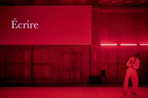 Nel 2013 il suo adattamento teatrale di Les Particules élémentaires di Michel Houellebecq conquistò il pubblico di Avignone e la ribalta internazionale. All’epoca Julien Gosselin aveva appena ventisei anni ed era già alla sua terza produzione. Oggi di anni ne ha trentotto e oltre a essere uno dei registi di spicco della scena internazionale, dal luglio 2024 è anche direttore dell’Odéon di Parigi, tra le più prestigiose istituzioni teatrali d’Europa. Una nomina importante, che ricorda (a chi ha orecchie per sentire: evidentemente poche nel nostro paese) che il teatro pubblico per fare il suo lavoro ha bisogno di energia, visione e rischio. Cioè di direttori e direttrici che provino nostalgia del futuro più che del passato. Nel mezzo – tra molti altri lavori – c’è una corposa produzione che comprende un monumentale adattamento di ben dodici ore di 2666 di Roberto Bolaño, una trilogia dedicata a Don DeLillo (Players, Mao II, The Names), un adattamento di testi dello scrittore russo Léonid Andreev, e ancora un’opera (Extinction) tratta da Thomas Bernhard e Arthur Schnitzler. Le durate lunghissime e la predilezione per la scrittura romanzesca sono insomma i segni distintivi di un regista noto per i suoi affondi originali nella letteratura, dalla quale evidentemente trae una linfa immaginifica superiore a quella offerta da testi pensati per la scena. Si capisce quindi quanto fosse atteso al Wiener Festwochen il suo ambizioso Musée Duras, un’immersione lunga dieci ore nell’universo letterario di Marguerite Duras, nata come esito finale di un laboratorio di due mesi con quindici giovani attori e attrici del Conservatoire National Supérieur d’Art Dramatique di Parigi. Una pratica, questa sì, che conosciamo bene anche in Italia, grazie a diverse esperienze dirette da artisti che proprio dai contesti di formazione traggono creazioni particolarmente felici (basti pensare alle varie avventure pedagogiche di Antonio Latella, da Santa Estasi del 2016 a Gli Ultimi giorni dell’umanità di qualche settimana fa in Biennale).