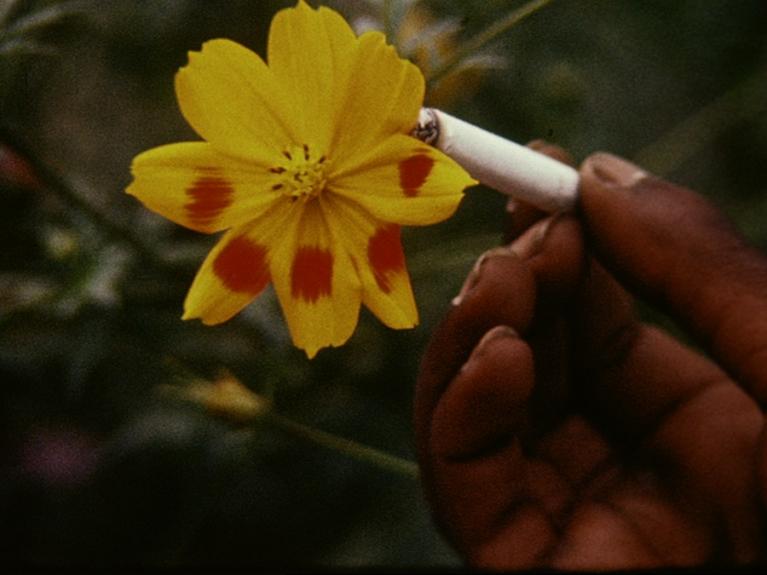 La vista di una viola apre l’opera Bruciare (1971). In questo lavoro  l’immagine di un uomo di colore che fuma si alterna alla visione di un giardino ben curato, a primi piani su fiori che ricordano vagamente i Flowers (1964) di Andy Warhol. Una sigaretta si nasconde ad ogni inquadratura dietro ai petali di differenti fiori, per bruciarne la pelle sottile. Il fiore, simbolo di bellezza e fragilità, viene deturpato dal calore della sigaretta accesa.