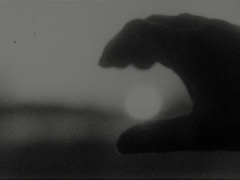 La crisi del soggetto e il ripensamento radicale del rapporto tra i sessi nell’ordine sociale e simbolico, proprio in contrapposizione al soggetto maschile, è presente in maniera metaforica in Sole in mano (o appropriazione, a propria azione, azione propria), tratto dall’archivio personale dell’artista del 1967-1970 ed editato 1973. Si tratta dell’unico film in bianco e nero di Pirelli. Protagonista è il movimento della mano dell’autrice che, di fronte a un orizzonte e alla campagna, cerca di afferrare il Sole. La messa in discussione di un ordine simbolico (il Sole, simbolo divino per antonomasia nel sistema patriarcale, e principio maschile della vita) viene espressa attraverso il non ancora detto e con un gesto. Fondare una tradizione al femminile avviene attraverso una sottile e provocatoria opposizione al mondo maschile, con una forza a cui non siamo abituati e che ha tutta l’aria di un principio di de-colonizzazione. In questo caso infatti il simbolo solare non è rigettato, ma, ripiegato al proprio scopo, è riscritto per inventare un linguaggio e un ordine simbolico nuovi su un duplice livello, personale e sociale. Il soggetto, riconoscibile in un corpo, che contesta la metafisica asessuata del maschile, arriva a superare i limiti di quel corpo.