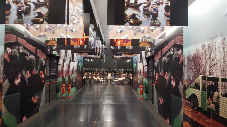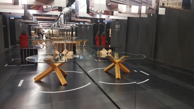 Un lunga Galleria, corredata di specchi, si snoda poi a ferro di cavallo per più di 100 metri. Vicina ai labirinti dei Luna Park, ospita in serie cronologica gli oggetti di design creati dal maestro (vincitore di ben otto Compassi d’Oro). Appesi all’alto soffitto, galleggiano sopra ciascun oggetto grandi pannelli fotografici (più di cento) riproducenti le immagini di riferimento a cui Bellini si è ispirato nel progettarlo: il profilo con branchie del muso di uno squalo per Programma 101 (Olivetti, 1965); una conchiglia spiraliforme per il prototipo della sedia Teneride (Cassina, 1970); il leggio dell’Annunciata di Antonello da Messina per il calcolatore Logos 50-60 (Olivetti, 1973); un grande cappello da suora per la lampada Area (Artemide, 1974); il tavolo de l’Ultima cena di Andrea del Castagno per il tavolo Basilica (Cassina, 1977); le colonne di un tempio dorico per il tavolo Colonnato (Cassina, 1977); il trono di Tutankamon per la sedia Cab (Cassina, 1979); il profilo di un airone che decolla per la sedia Persona (Vitra, 1984) e ancora molte altre, in un caleidoscopio rutilante di forme e di colori che ammalia e che inebria.