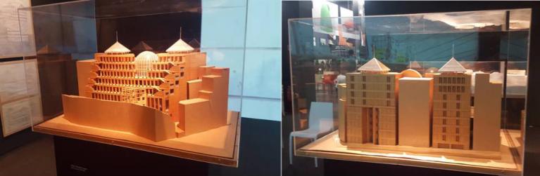 Plastici del Tokyo Design Center, 1991. Sotto: alcuni scorci del Tokyo Design Center.