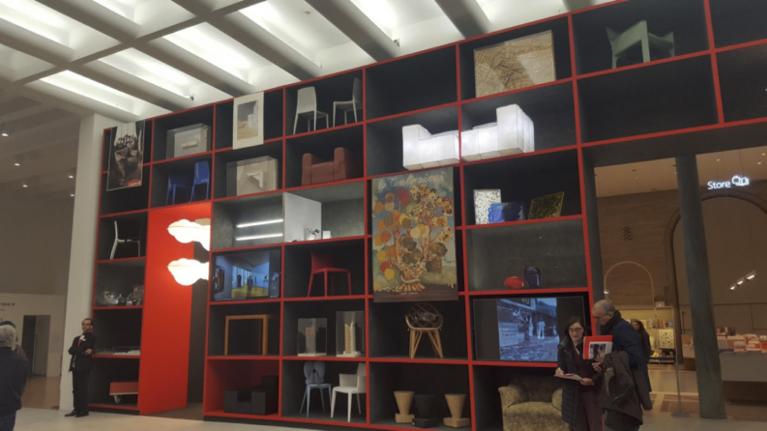 Come nella Home-Page tridimensionale di un sito web sui generis, apre la mostra un Portale, ovvero una gigantesca libreria (lunga più di 25 metri e alta 6) su cui sono appoggiati, a mo’ di icone su cui cliccare, gli oggetti di design che si incontreranno lungo il percorso, insieme a schermi che proiettano video, a gigantografie e a modellini di architetture.
