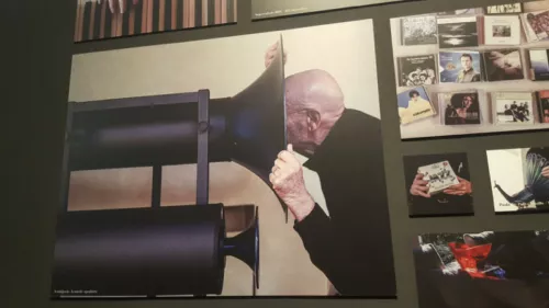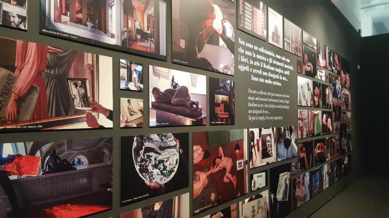 Su una parete sono poi riprodotte, come in una sorta di wunderkammer, le mani del maestro che reggono oggetti fondamentali per la sua poetica, dal quadro “L’architetto” di Mario Sironi a una giacca di Issey Miyake; da alcuni oggetti di Ettore Sottsass alla raccolta completa delle lettere di Mozart; da un piatto di Lucio Fontana al portaghiaccio di Gio Ponti; dal Compasso d’Oro a una matita con un foglio di carta, bianco, e molto altro ancora.