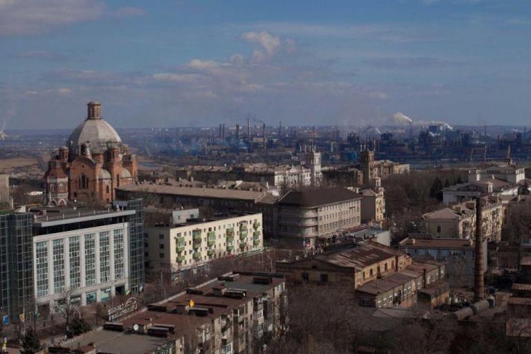 A view of central Mariupol with the giant Ilyich and Azov steelworks in the background (Vladimyr Cheppel).