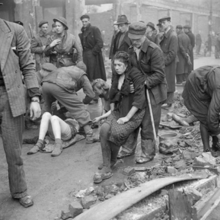 Lavoratrici coatte dell’Est Europa a Osnabrück vengono salvate poco prima della loro uccisione il 7 aprile 1945 (Hardy, Bert, No 5 Army Film & Photographic Unit - http://media.iwm.org.uk/iwm/mediaLib//50/media-50009/large.jpg This is photograph BU 3097 from the collections of the Imperial War Museums. )
