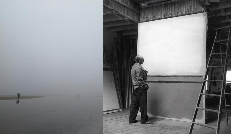 Lido di Ravenna nella nebbia, 31 dicembre 2021 / Rothko nel suo studio sulla 53a strada, davanti a No. 25, 1951. Foto di Kay Bell Reynal, 1952.
