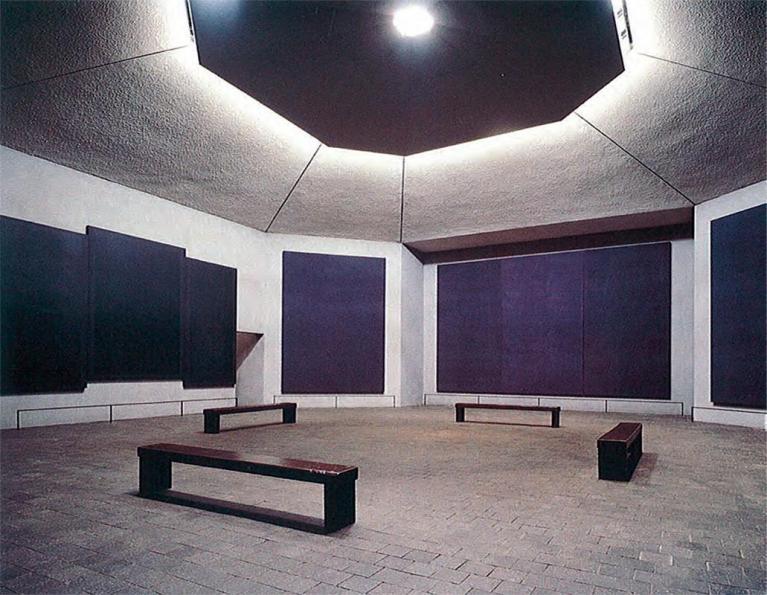 Rothko Chapel, interno, 1971. Foto di Hickey-Robertson, Houston, Courtesy The Rothko Chapel.
