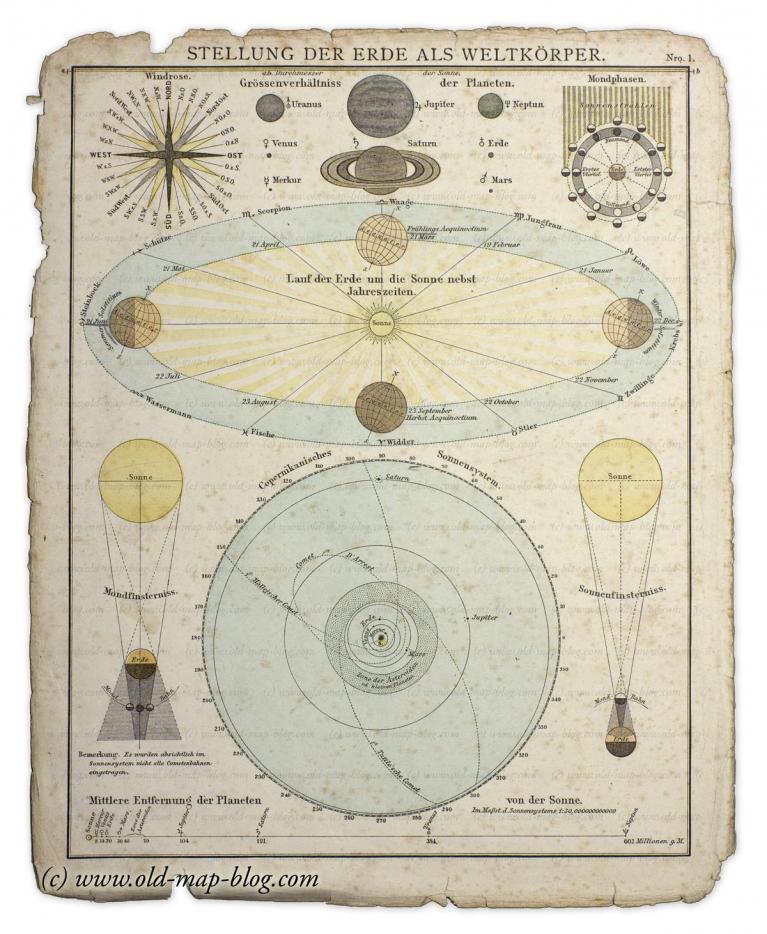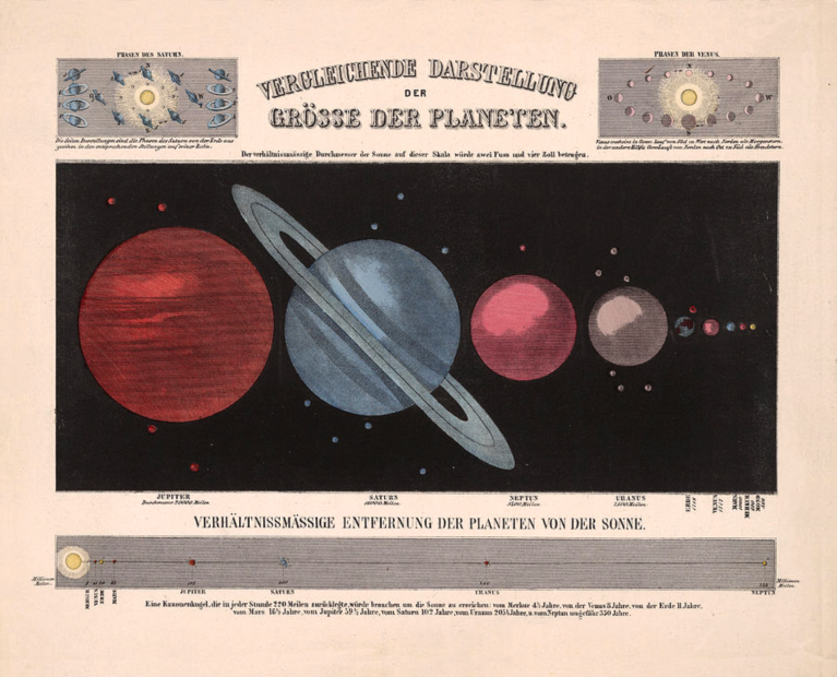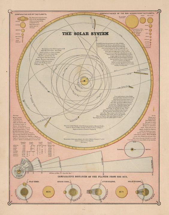 Historic map solar system, 1872.