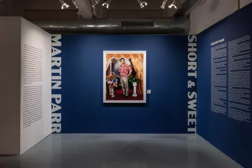 Marc Augé ha fatto l’etnologo nel metrò e nei bistrot parigini. Con un approccio in qualche modo simile Martin Parr, fotografo-antropologo del tempo libero, si è mosso invece tra party e danze, spiagge e turisti che si fanno fotografare mentre “sorreggono” la torre di Pisa. Entrambi hanno rivolto la loro attenzione verso la vita dei loro simili, cioè sui nostri comportamenti collettivi, senza avere necessità di raggiungere popoli cosiddetti primitivi (come doveva fare un “vero” etnologo), né raggiungere paesi in guerra, e neppure fotografare drogati o migranti disperati (temi classici della fotografia impegnata). Certo Augé scriveva, mentre Parr fotografa, ma entrambi hanno infranto le regole prestabilite. «La gente ordinaria e i posti qualunque ispirano in me la stessa passione che porta altri fotografi a raccontare guerre, carestie ed epidemie: io, però, preferisco andare al supermarket della mia città», ha detto anni fa Martin Parr con il suo inglese sens of humor. E ora possiamo vedere un sunto ragionato delle opere di questo grande della fotografia nella mostra Short & Sweet (fino al 30 giugno) presso il Mudec di Milano: un’esposizione curata dall’autore stesso, in collaborazione con Magnum Photos, la celebre agenzia fotografica di cui Martin Parr fa parte dal 1994 grazie ai buoni uffici di Henri Cartier-Bresson. Nato a Epsom nel 1952, Parr ha realizzato una ventina di libri se non di più, ha curato festival e avuto mostre personali un po’ ovunque nel mondo. Già il titolo di questa mostra milanese ci fa capire come essa sia short: non costituisce infatti una vera e propria antologica, causa la mole strabordante dei lavori di un simile autore. Si tratta piuttosto di un’esposizione sintetica, ma senz’altro ragionata, di più, anche sweet, cioè allettante, capace di farci apprezzare il tocco umoristico e arguto del suo stile. In aggiunta ci propone pure qualche ricerca davvero poco nota, che ci riporta agli esordi di Parr, con inaspettate foto documentarie in bianco e nero, ma già pervase da quel sotterraneo tocco d’ironia, da quello spirito sottile che farà di lui un sociologo-fotografo curioso e ficcanaso, e che caratterizzerà poi i suoi più celebri lavori. Mostra peraltro che esplode in una sorta di apoteosi della dolcezza (sweet, appunto) con Common Sense (1995-1999): è questa una delle sue ricerche più famose, allestita qui al Mudec su pareti ricoperte d’immagini che a loro volta danno vita a un tripudio giocoso e iper colorato del kitsch in tutte le salse: dalle ciabattine con le margheritone alle unghie posticce con brillantini incapsulati, dalla signora che rosola al sole con plasticosi copri occhi blu, al barboncino tosato con ciuffetto alla moda, per poi gettarsi a capofitto (in senso vero e proprio dato che si tratta di foto ultra ravvicinate) su cibi di tutti i tipi, meglio se un po’ schifosetti o accattivanti. Così vediamo gelati squagliati a terra, vassoietti stile McDonald con avanzi di cibo smangiucchiati, ma anche dolcini con faccine sorridenti – ovviamente coloratissimi caso mai non attraessero a sufficienza – e pure una delizia di Catania: le cosiddette minnie di Sant’Agata, ovvero pasticcini bianchi glassati con in cima una bella ciliegina candita, in modo da ricordare, appunto, le tette tagliate che la martire Sant’Agata in molti quadri presenta su bei vassoi come se fossero prelibatezze da gustare (cosa che i catanesi hanno colto con destrezza e astuzia).