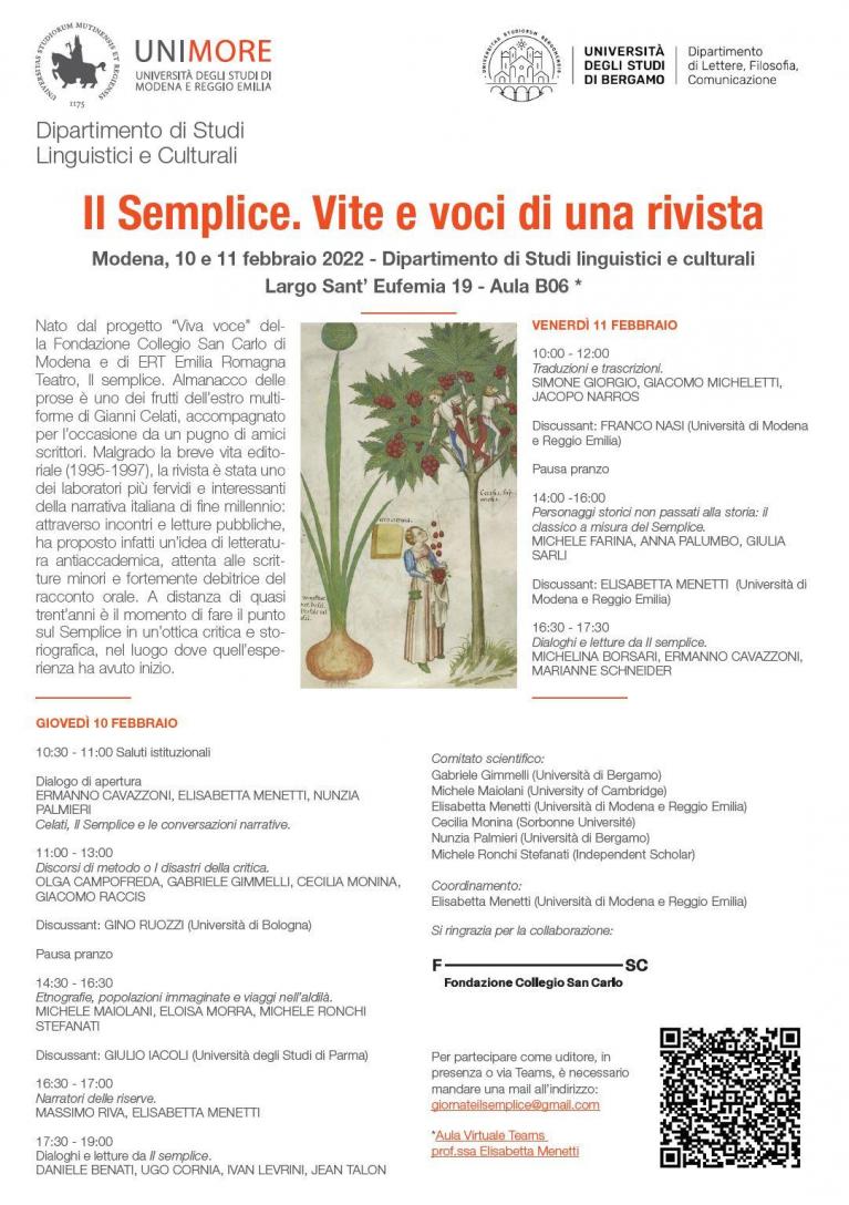 Questo testo, che pubblichiamo per gentile concessione dell’autore, riprende l’intervento preparato in occasione del convegno Il Semplice. Vite e voci di una rivista (Modena, 10-11 febbraio 2022), organizzato dall’Università di Modena e Reggio Emilia e dall’Università di Bergamo in collaborazione con la Fondazione Collegio San Carlo. Il programma delle due giornate è scaricabile qui; per assistere alle sessioni, in presenza o via web, inviare una mail all'indirizzo giornateilsemplice@gmail.com.