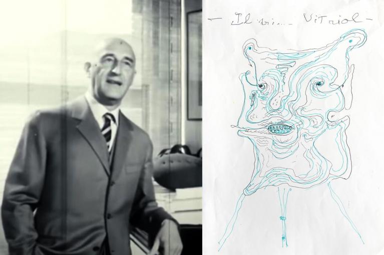 Per nobilitare gli scarabocchi dobbiamo affidarci ad alcuni uomini che, seppure più che adulti, si mantengono antichi (e non è un modo per scherzare sull'età veneranda), come il già citato Gillo Dorfles che, nel silenzio del suo studio faceva apparire, alla stregua di un mago, creature sbilenche sulle tele, senza progettarle né pensarle, affidandosi completamente alla casualità del momento.